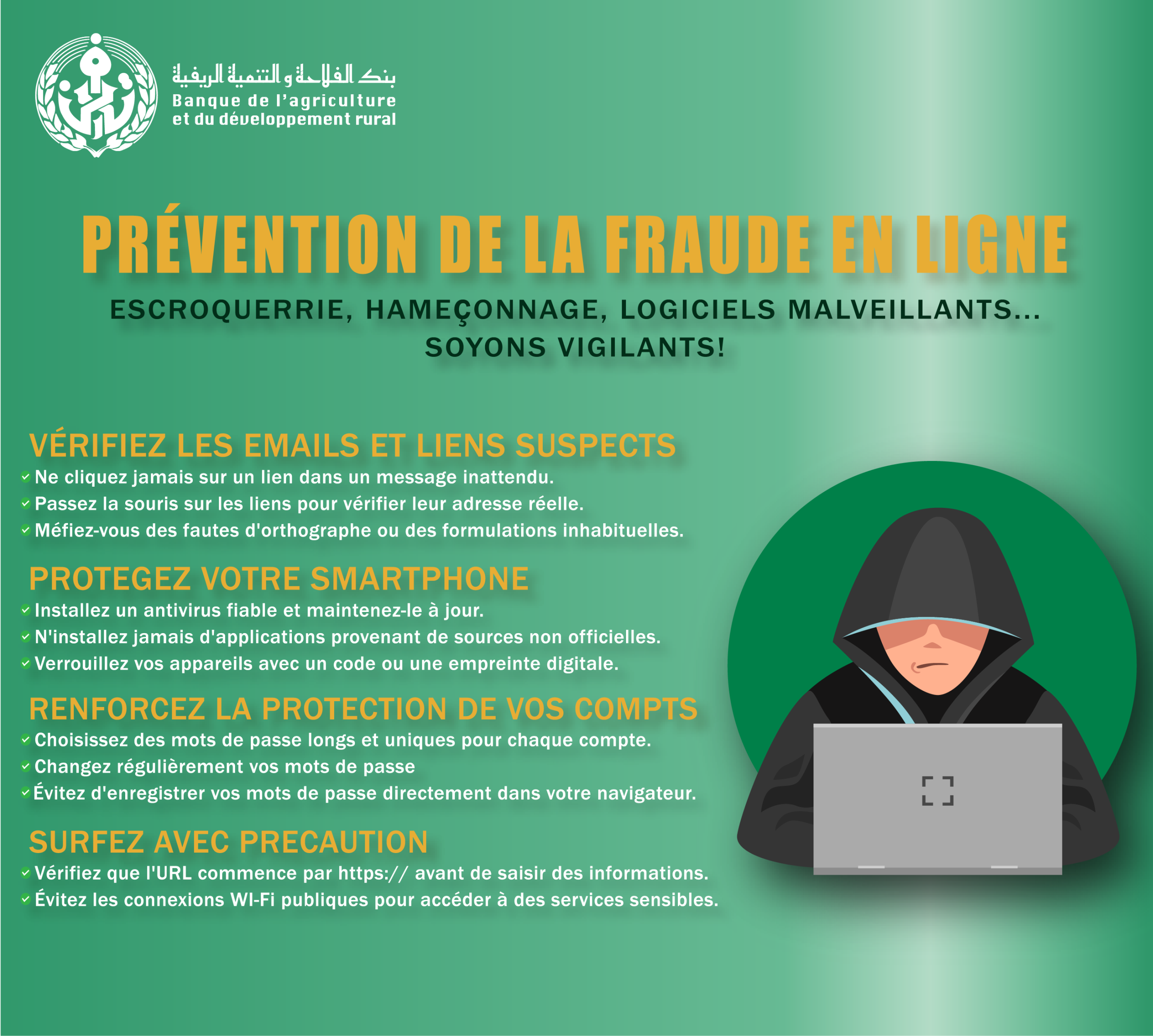 - Virements vers des bénéficiaires domiciliés dans les agences de la BADR et chez d’autres institutions.